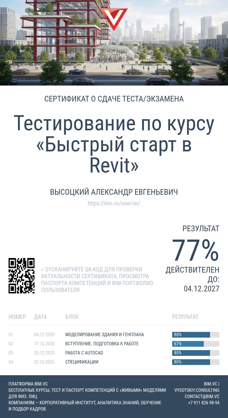 Тестирование по курсу «Быстрый старт в Revit». Начальный